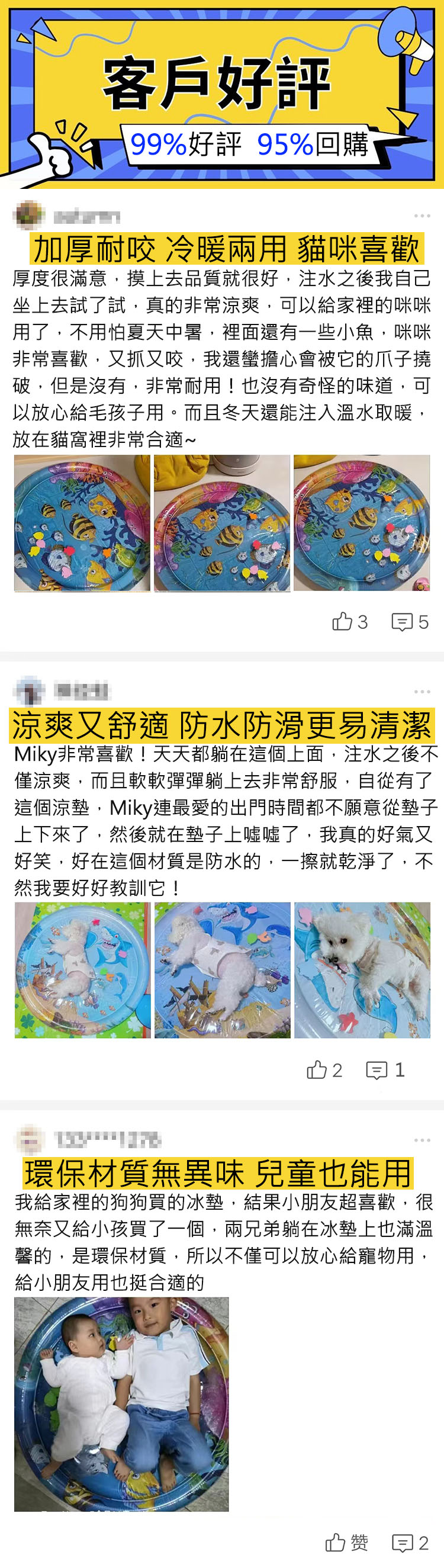 12分鐘前【冷暖兩用!夏季直降7℃,冬季可加溫水40℃!環保防滑材質,無異味更安心,充氣注水軟彈舒適,貓狗四季通用!兒童可用】寵物大水床 超大直徑 玩趣圖案 寵物孩子都可躺可玩耍 - 【65cm,2組入】划算,每個均價不到550!僅需1099