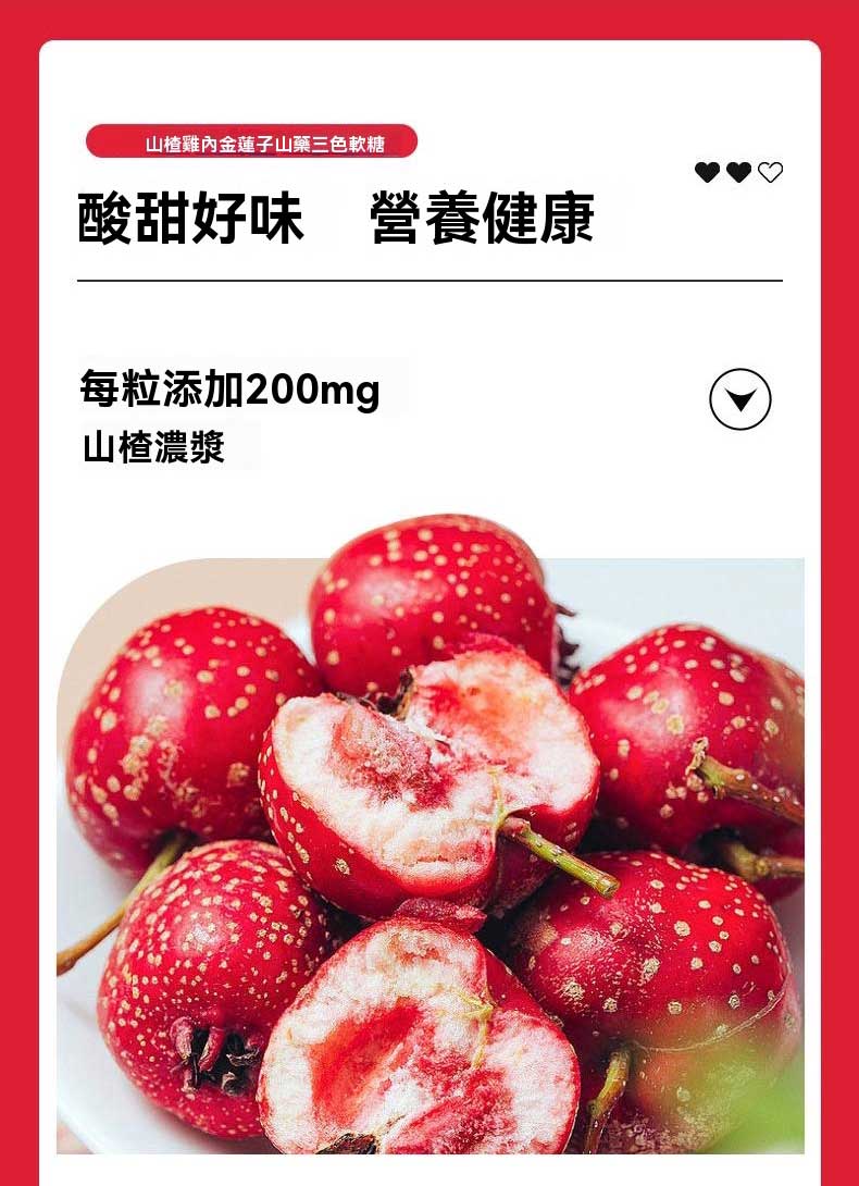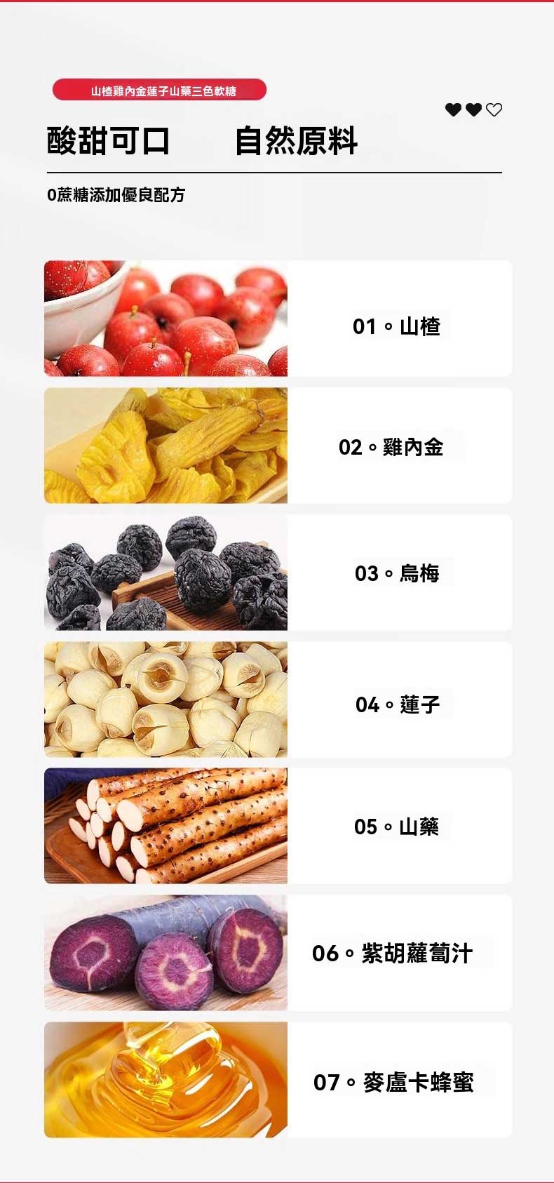 7分鐘前【山楂雞內金軟糖】開胃、健脾、消食,無蔗糖,純天然藥食同源,增進孩子胃口,增強消化,促進營養吸收 - 【開胃健脾 促進脾胃功能】買三送四 7入組 NT$1398