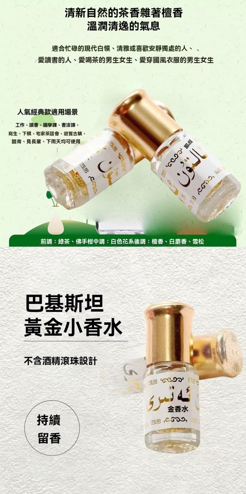 半小時前巴基斯坦黃金香水的主要成分是不含酒精,不含麝香的高純度香精。 這種香水以其高濃度和持久留香的特點而受到關註。它的香味被描述為奶香奶氣的,帶有一種保護欲,聞起來非常舒適。香水的香味被形容為清雅的奶香,適合日常使用;巴基斯坦黃金香水以其高純度和持久留香的特性,能夠散發迷人的魅力,類似於古代歡宜香的效果,因此被賦予了歡宜香的稱號。這種香水不僅具有自然體香的效果,還能在特別場合帶來愉悅與放松的感覺, - 【超值海購】36入組-NT$1480