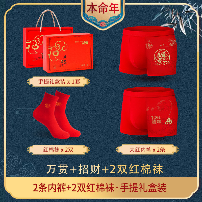 15分鐘前【本命年必備】龍年内褲大紅色男士内褲莫代爾平角褲四角褲套裝 - 【虧本出清!5盒裝】僅需NT$1498(均價NT$300)