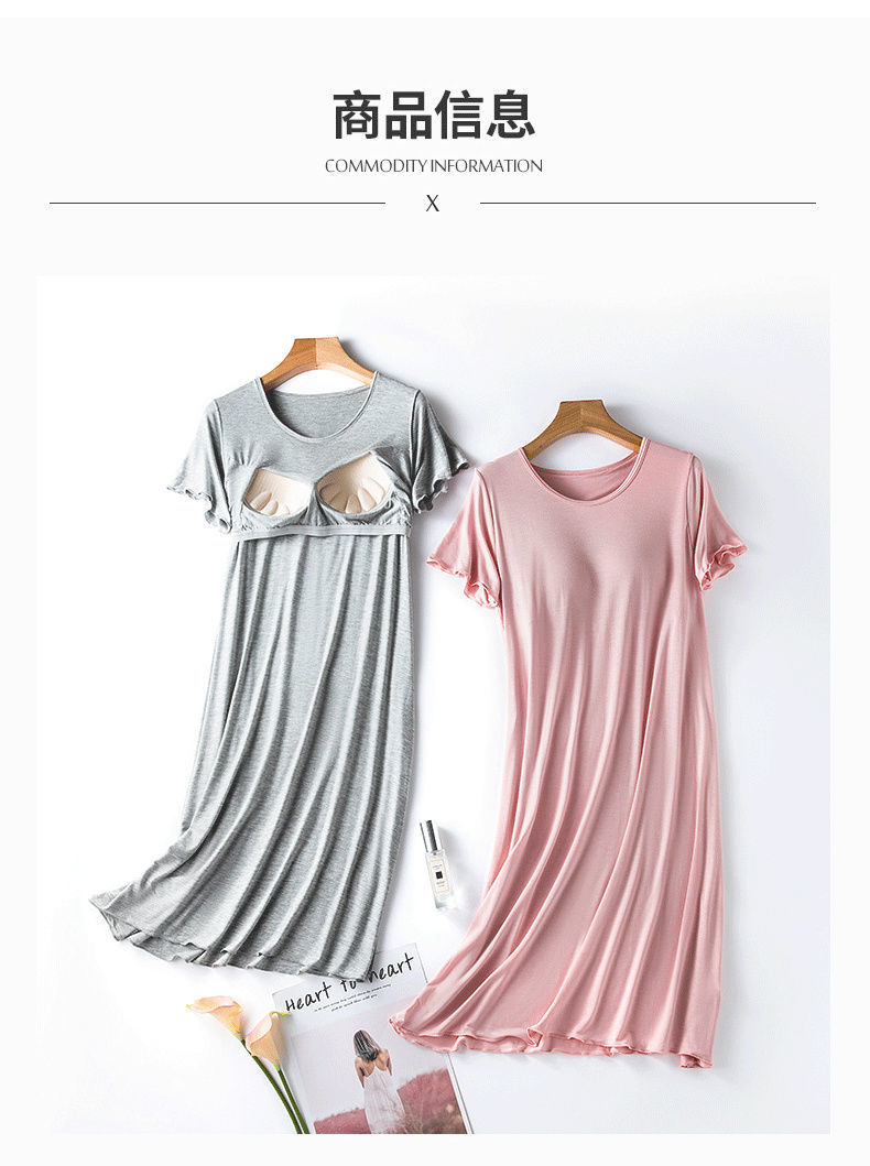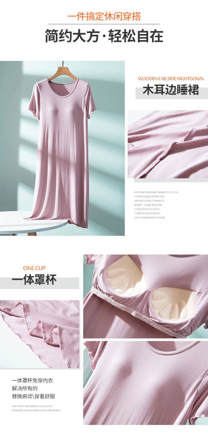 7分鐘前 莫代爾帶胸墊睡裙 夏季女罩杯一體睡衣連衣裙 寬松木耳邊家居服 - 【店家推薦】3入組-NT$1650