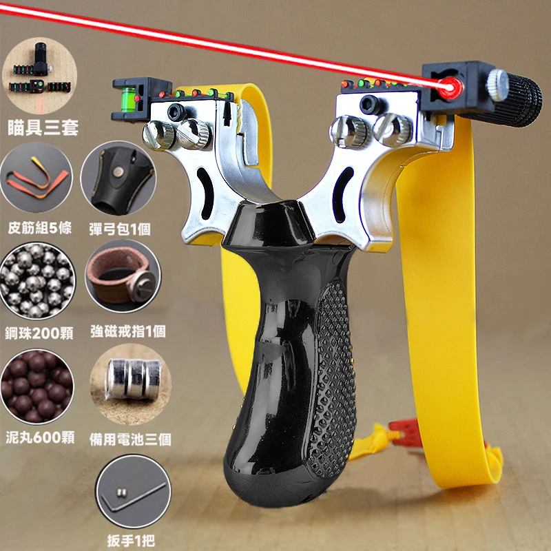 半小時前【百發百中彈弓】激光瞄準,水平矯正,刻度瞄準,50米內百發白中,全鋼材料,升級版,大號皮筋,庫存預警,先購先得 - 彈弓黑色