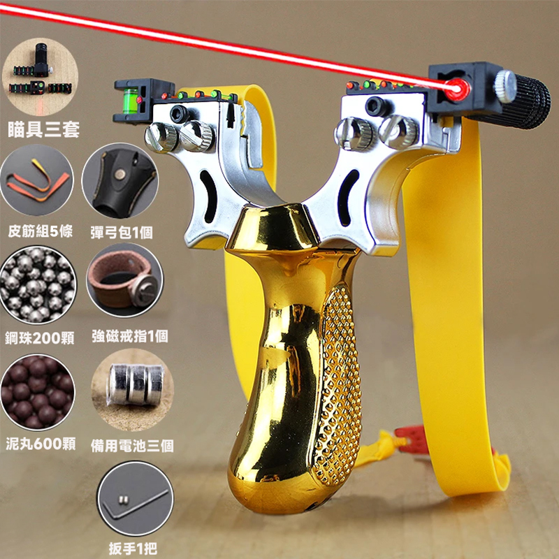 7分鐘前【百發百中彈弓】激光瞄準,水平矯正,刻度瞄準,50米內百發白中,全鋼材料,升級版,大號皮筋,庫存預警,先購先得 - 彈弓金色